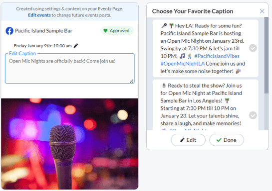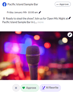 Review, edit, and approve your social media posts before they reach your customers. Stay ahead of the scroll by setting up a full week of content in just a few minutes!