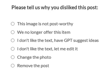 When you click the grey X, a pop-up will appear asking why you disliked the post. Depending on the type of post, you may see several options to choose from.