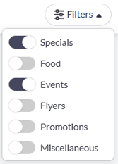 If you’d like to narrow your view further, you can use the Filters option in the top right of the page to show only certain types of posts, such as Specials or Events.