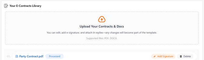 Once you click the button, you can easily choose a template from your E-Contracts Library or upload a new one.