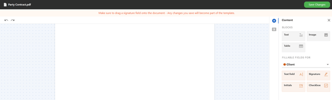 If you'd like to, you can save your contract template with the restaurant manager field signed, to save some time. If you prefer to have only one signature field, just drop the client's signature box, and hit "Save Changes" in the upper right corner.