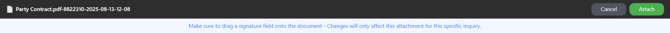 When ready, just click the green "Attach" button in the upper right corner. You'll know if the contract has been attached properly if it appears just below the Attach button: