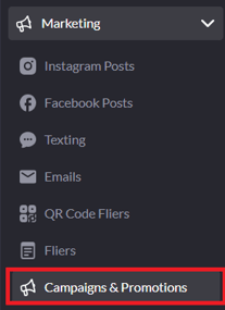1. Navigate to the "Campaigns & Promotions" tab under the "Marketing" cluster.