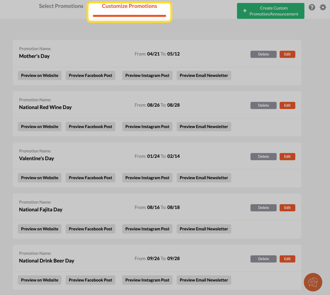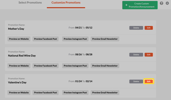 To customize or edit any promotion, click "Edit" on the right of the promotion that you're interested in updating.