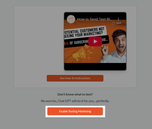 2. At the bottom of the page, click the "Enable Texting Marketing" button. This will open the "Texting Settings" page.