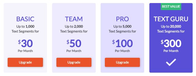 3. Select the texting package you want to sign up for. There are four packages available, each at different price points.