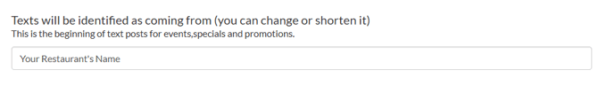 5. Enter your restaurant name. Keep it short—every character counts toward the 160-character limit for each text blast. After all the fields are filled out, hit the "Save" button on the bottom right.