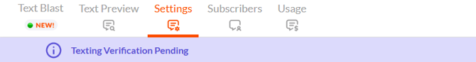 If the texting verification process is in progress, you will see a "Texting Verification Pending" banner on the Texting page.