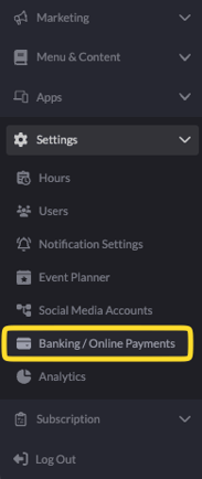 1. Navigate to the "Banking/Online Payments" tab under the "Settings" section - this is where you can access Stripe for your SpotHopper account.